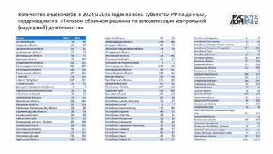 Ассоциация НСРО «РУСЛОМ.КОM» провела анализ динамики количества лицензий в 2024 и 2025 годах по всем субъектам РФ , основываясь на…
